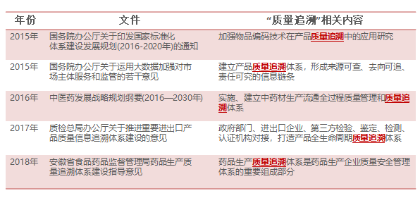 2018年11月1日国家药监局发布关于药品信息化追溯体系建设的指导意见,明确要求药品上市许可持有人、生产企业、经营企业、使用单位通过信息化手段建立药品追溯系统,及时准确记录、保存药品追溯数据,形成互联互通药品追溯数据链,实现药品生产、流通和使用全过程来源可查、去向可追;有效防范非法药品进入合法渠道;确保发生质量安全风险的药品可召回、责任可追究。 药品质量安全是关系民生的重大问题,我国药品质量安全现状与老百姓的美好生活愿望还存在一定的差距。政府和企业都已经意识到建立溯源体系是解决问题的好方法。近年来,国家高度重视药品追溯体系建设,相继出台了一系列相关文件,积极鼓励药品生产、流通、销售环节的各责任方以及第三方机构参与体系建设。